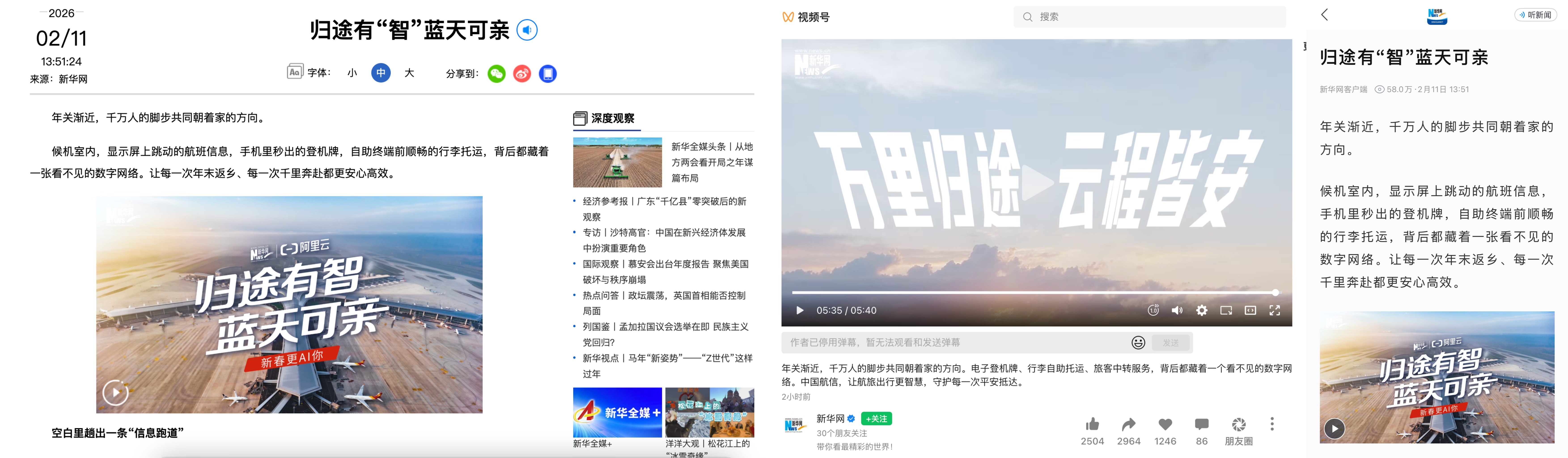 归途有“智” 蓝天可亲!新华网专题报道中国航信智慧春运