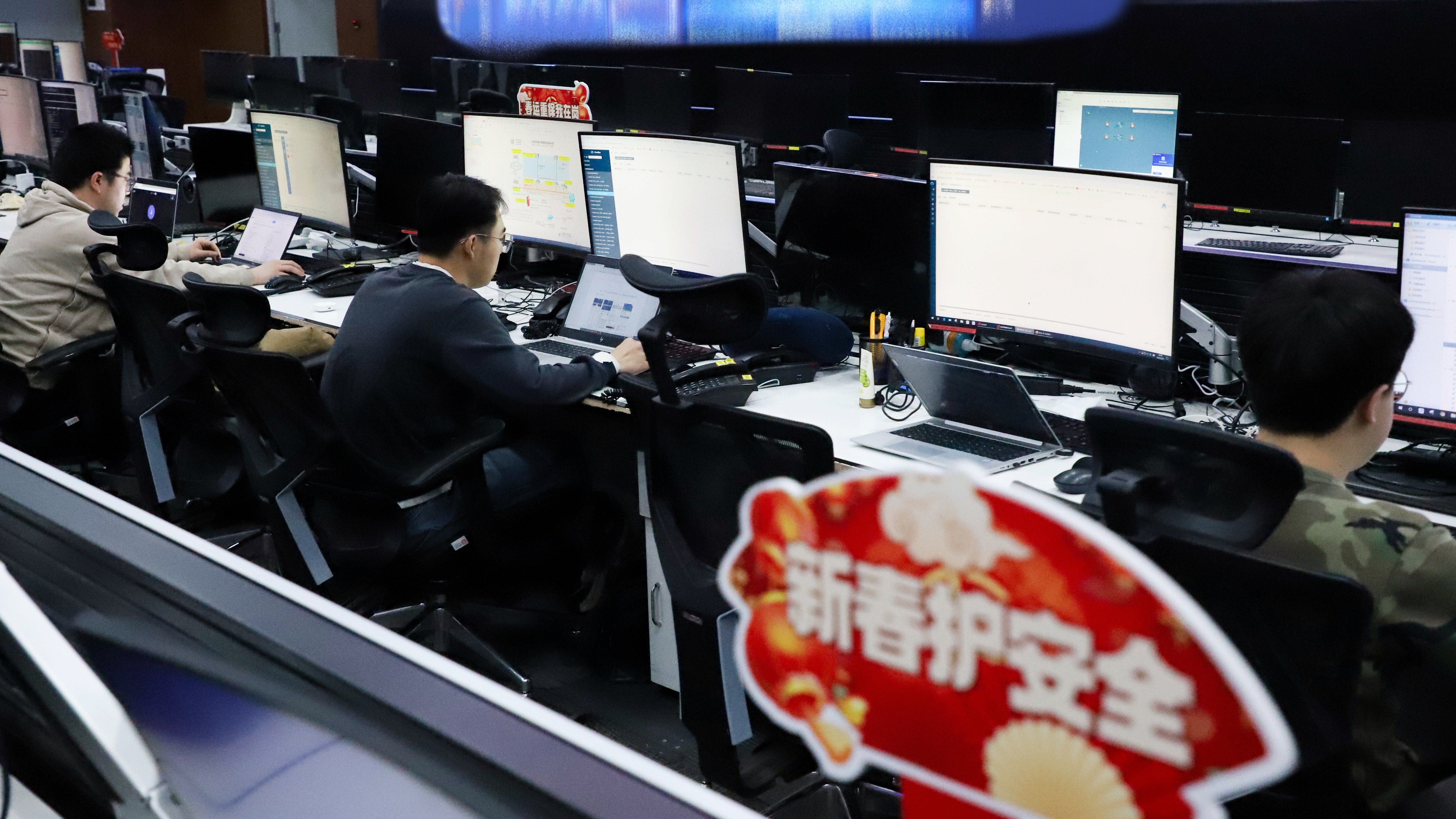 在中国航信运控指挥中心,巨大的监控屏幕上,数据流如星河般闪烁。在这里,运行中心的一线、二线值班人员紧盯着中国民航旅客服务系统的实时状态,用7x24小时的不间断守护,为春运返程高峰筑起一道坚实的“无形防线”。